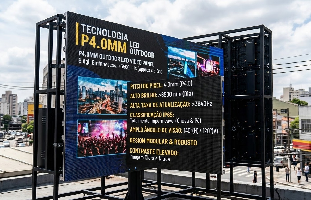 Versátil e robusto, é o modelo ideal para sinalização digital e publicidade dinâmica em centros urbanos.